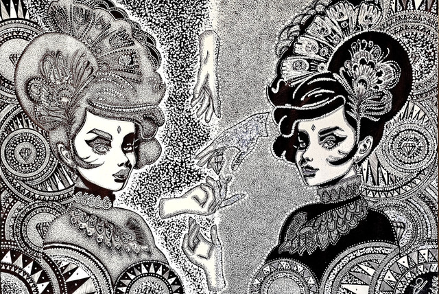 They were "the last touch". After I finished the painting I already scanned it and it wouldn't be me if I would return to the painting to add something...again.