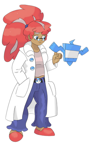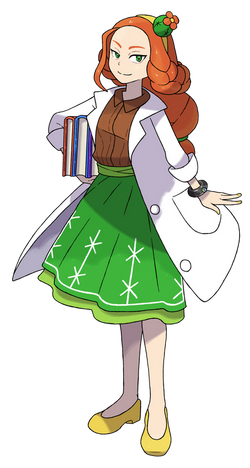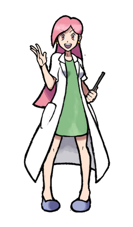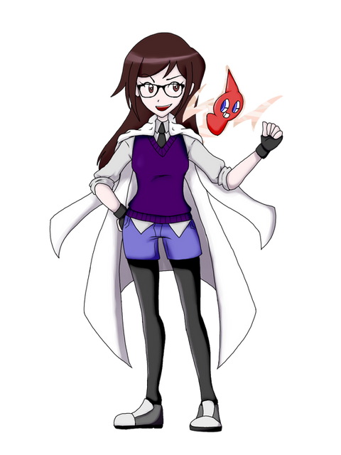 Description: The professor of the Alker region, Professor Olive is an eccentric and quirky individual. She studies pokemon types in her resident lab in Ajime Town. She gives you the choice of the starters Rooteo , Embat , and Ampib on your first journey around the region. She specializes on each type as a whole, and is currently studying the origins and behavior of ghost-type pokemon. She is Fennel’s cousin, who works in the Unova region.