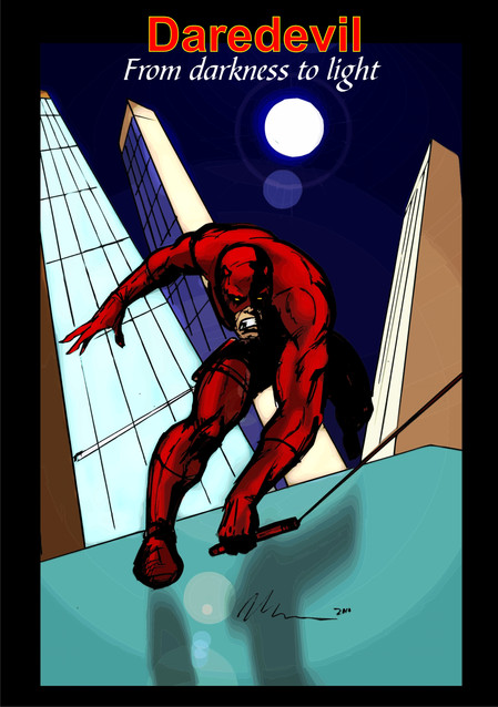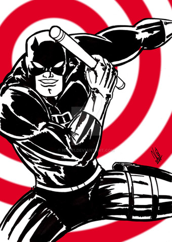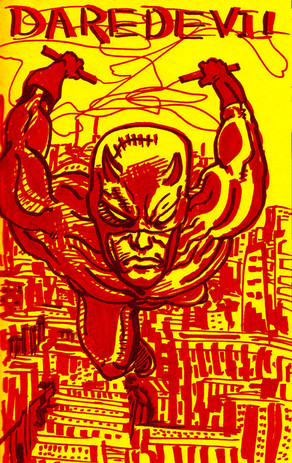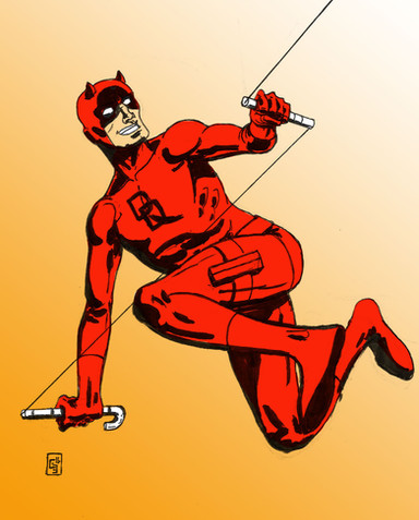 One of my best works evah! I swiped the idea from an old Byrne FF book...DD just chillin' on a rooftop. The whole thing was two hours start to finish and I nailed it just the way it looked in my head. Woo and Hoo!Commissioned in '08