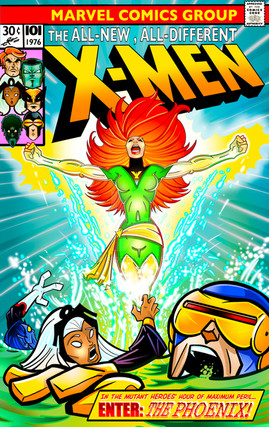 A fav from back in the day. The Dark Phoenix saga, along with the five year build up, was simply the greatest bit of comic story tellin I’ve read or seen. The whole reason I love ‘em.Phoenix was just another brilliant design from Dave Cockrum. Especially loved the way Byrne and Austin did her. I remember one panel , tho’ not what issue, she was flying up and the text was something about her power bein a song within her. Wonderful panel and she looked bitchin. So I tried to go that route with her, using my memory of the panel instead of looking it up to reference it.