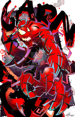 I never really liked all that tongue and slobber nonsense they did with him...much more liked McFarlane's original take. Creepy with that big Chesire cat grin.I wanted his spider emblem to look like bone.... I was pretty happy with it when I was done...Commissioned in '01