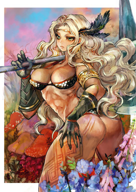 Oh wow, the colouring and the outfit design look incredible here! My favourite parts have to be the hair and glowing red eye!