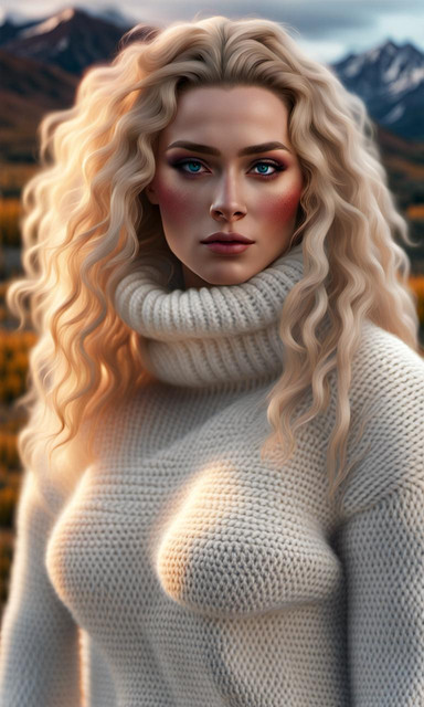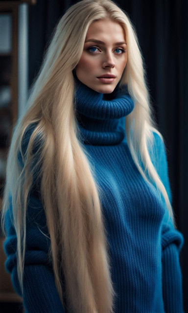 #ai #blondhair #cardigan #cold #fetisch #fuzzy #hat #knitting #longhaired #mohair #scarf #sweater #turtleneck #winter #woolfetish #hairlover #aiart #dreamup #woolladys #wooldream #mohairlove