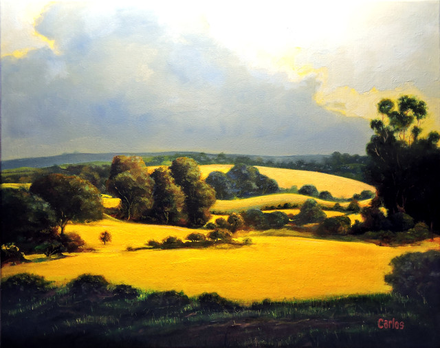 #california #carlos #country #dreams #hills #jose #landscape #meadow #morning #oak #oil #painting #san #spring #tom #trees #valley