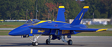 closer view of US Navy Blue Angels Grumman F-11F-1 Tiger Jet,the team,s star performer from 1959 to 1968. had the distinction of being the Blue,s first supersonic mount,also the last Grumman "Cat" used,all subsequent mounts produced by McDonnell-Douglas.Related content