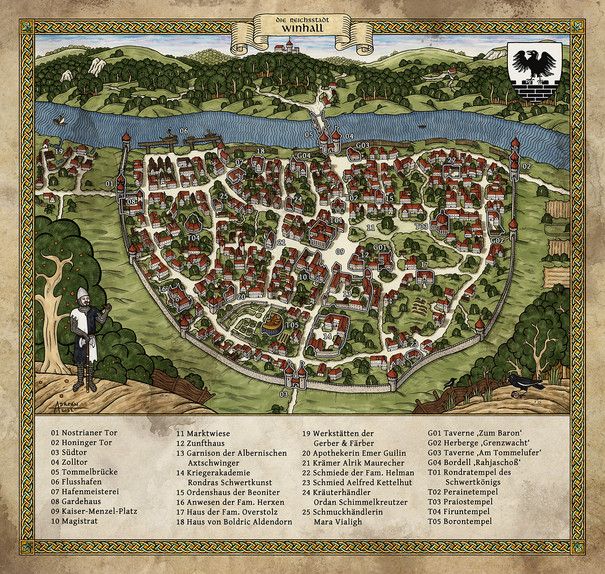 I really like the style of this map. It's pretty sensitve and somewhat oldschool. Colors and used style are well balanced and the of the regional map as well as a front view of the city is real nice. Can't say how much I like the overall coherence of this map! The level of detail is most impressive without seeming to be to much ^^