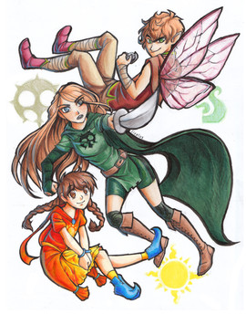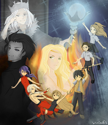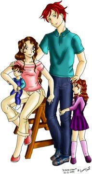 "I'm the coolest dad ever!"A group picture from the book series ~ SekiRyuu is writing. Main character Jake Stryker (who controls the element of fire), his little sister Abigail, and daughter Roxanna.