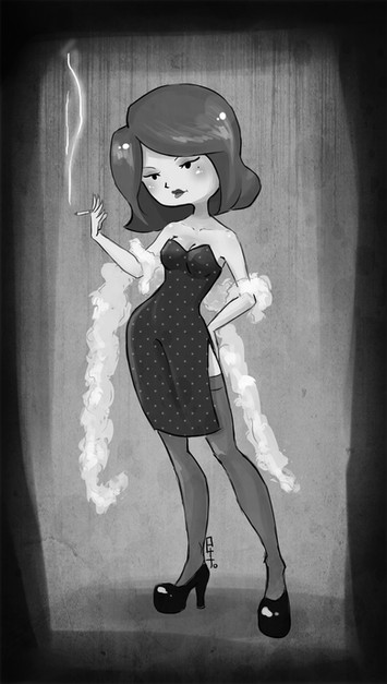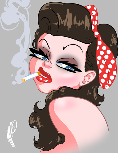 #black #character #cigarette #cute #design #dot #dots #fashion #girl #illustration #pin #pinup #red #sexy #smoke #smoking #up #white #woman