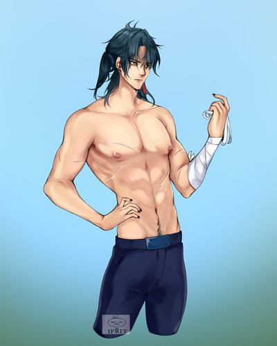 #anatomy #anime #ikemen #jett #male #muscle #oc #original #shirtless #solo #study #back