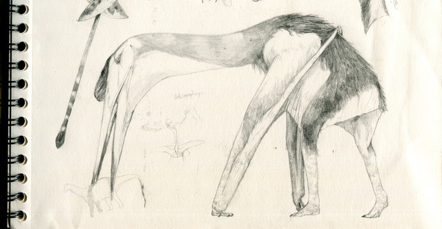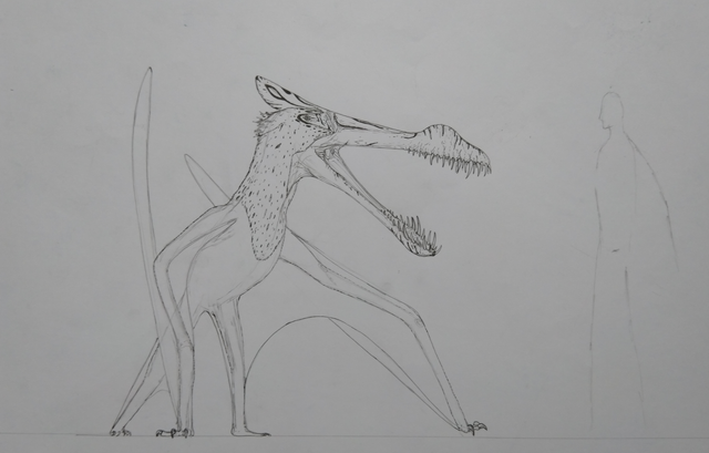 Some images from 2014 that I have lost motivation for and do not ever see being completed. Will eventually be moved to "scraps".The giant deinocheirid ornithomimosaur Deinocheirus mirificus and the fragmentary morrison ctenochasmatid pterosaur Kepodactylus insperatus.
