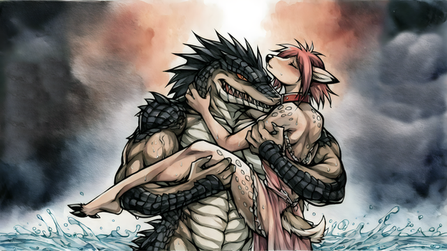 Mark and Amber having fun in the water.Art by Predaguy