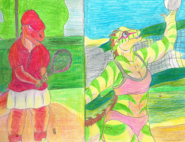 Amber and Matilda playing some beach volleyball.Art by Predaguy