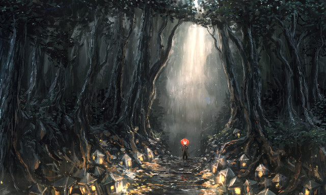 I hope you enjoy this simple piece that i made, finally exam is over and now i can focus more in painting. For this one i kinda want to do a rainy vibe in a forest, i think it's rare when i do things like that. The tranquil feeling of a soaked forest. It reminds me of the mountain that i hiked on months back. Also adding a red umbrella as a nice contrast to the somber feeling to this. While you can interpret this scene as melancholic or sad, personally i just like this kind of rainy mood.