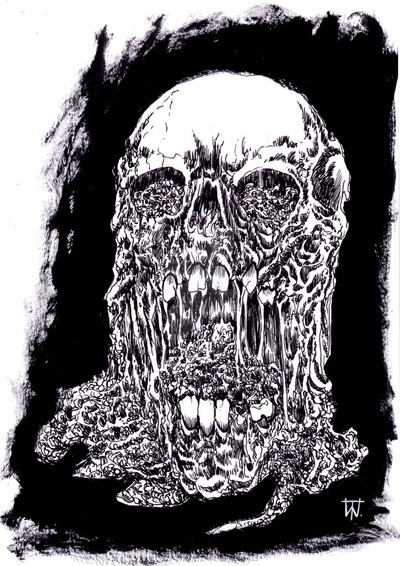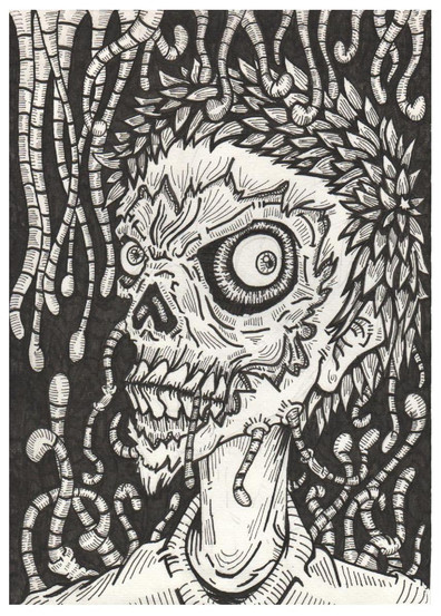 Mostly pencils right now, but I have some older ink stuff I keep meaning to try to photo though. The ballpoint pen piece I'm thinking of is actually the same one I think you would get a kick out of, thematically, but it's been severely deteriorated by time though, I'm just hoping to get a bit of a photo to work from for a larger version.