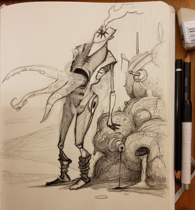Thank you Lisa Yes, Alien movies have been inspiration for me throughout my life. These 'tube-headed-astronauts' have been lurking in my sketchbooks for many years now, about the only thing that comes naturally when i start to draw something