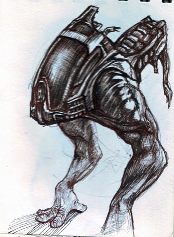 Tämähän meiän olisi pitänyt saada videolle, vaikka on se eri asia piirtää ku kuvaa samalla. Beksinskin ja Dalin pitkien koipeliinien hybridi ois puottanu leukoja lattiaan, vaikka keskeisin inspiraation lähdehän tässä on toki Pallarin Hannun taaperrusta kaikuvat sormet/jalat.
