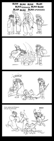 This comic is perfect!! It's really... well, THEM!! Aragorn: too polite and too much of a gentleman (despite his rough exterior ) to comment on Eowyn's cooking, and Ranma: he's being a jerk. As usual...