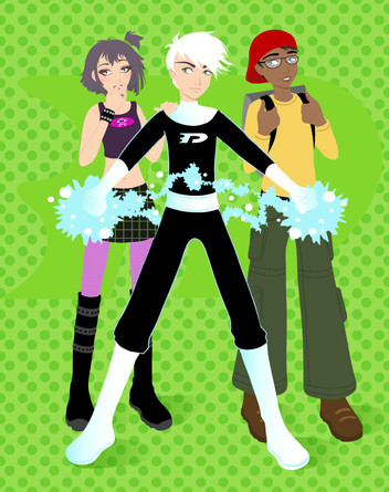 For some reason...The show 'Danny Phantom' on Nickalodeon caught my attention enough that I was enamoured to draw these three in an Anime-Style. > _____>_Paulina, Danny ('ghost') and Sam...Love triangle? Hmm. Support who you will. ^_____^