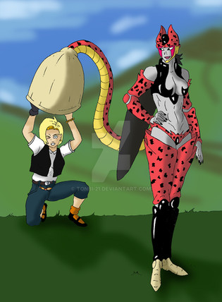 With her fighting days long gone, she barely has the power to defend against the smallest of Deema's attacks. The entity finds this amusing and decides to torture the female saiyan rather than take her life quickly.