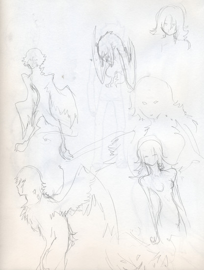 it's pretty much the result of acrylics and water mixed around a lot and applied to plain computer paper ^^ And then an ink brush pen, which I actually hated using when I did this.