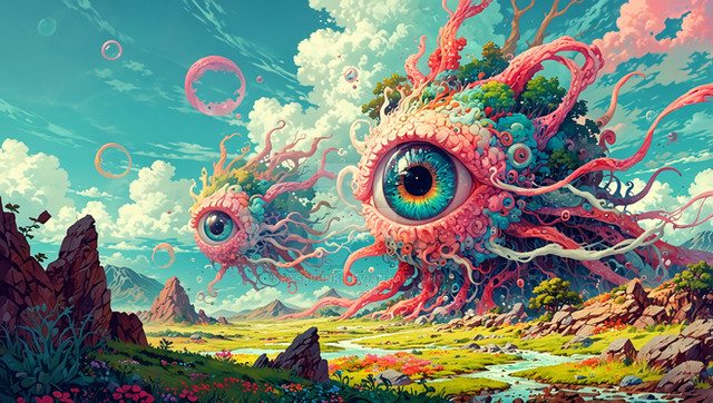 This reminds me of the cyclops by Odilon Redon: [link] Other pieces of his also have many eyes