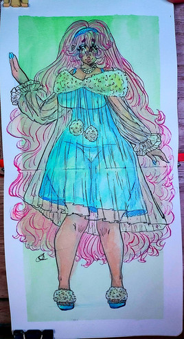 #characterdesign #hairstyle #cartoon #traditionalart #dress #originalcharacter #redhair #bear #blueeyes #fantasy #ginger #oc #patricia #paty #redhead #watercolor