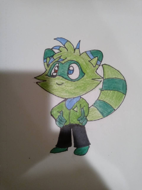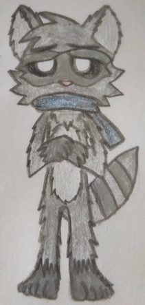 freaking cute ! I love his scarf, like his tail ^^ His scarf is a racoon tail ?? XD