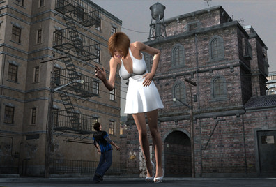 Unfortunately for Allison, her troubles were Far from over. She was STILL growing, seemingly Uncontrollably. She was crying so much, Worried. As she neared 22 feet tall she saw Clay standing in awe right next to her foot. Laurie was standing petrified with fear. Whilst Sean was just standing looking on.