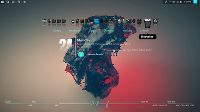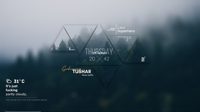 My introduction to rainmeter theming hope you like it mates!CLARIFICATION! I have just modified the Muon Suite 1.1 by razrxgt (RAZRXGT Deviant ) nothing is coded yet xD