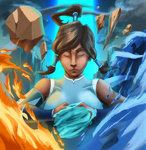 I like the smooth colouring and how you bring the 4 elements together with Rava and Korra!