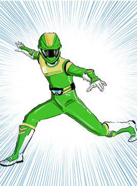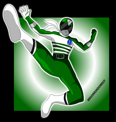I have to admit, the description you gave green sounds ideal for a Red Ranger. Thus I feel giving it to the green ranger is an original move. Nice work on the pose as well