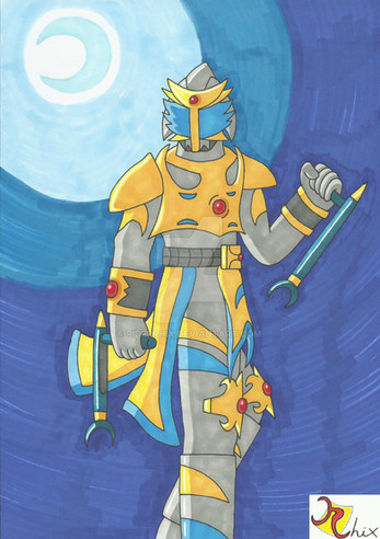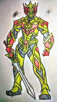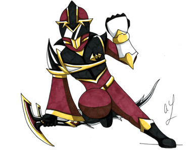 Alas, the leader of the team, it's the Red Knight Ranger. I like the idea of him being the person who's always willing to try new things and when he was in school, was involved with several clubs and the like. A bit of a daredevil, he takes great responsibility as the Red Ranger and the leader and as he grows as a ranger, he becomes more analytical to become a much more effective leader. His sub-weapon is the Claymore and creature is the Dragon.Enjoy!