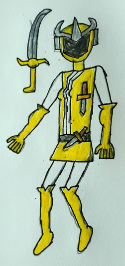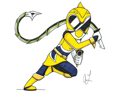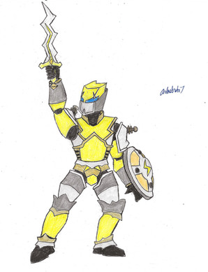 Here's the Yellow Ranger of my Knight-based Sentai. I haven't really worked too much on making her character, but I'm leaning more towards a compassionate type. Her companion animal is a Pegasus and her sub-weapon is a Crossbow. Working on the pose was a bit meh, seeing as I was trying to make a pose with the Crossbow but all of the sketches looked bad. I figured since I didn't show the boardsword and sheath in any detail with the Green Ranger, I would with her.Enjoy!