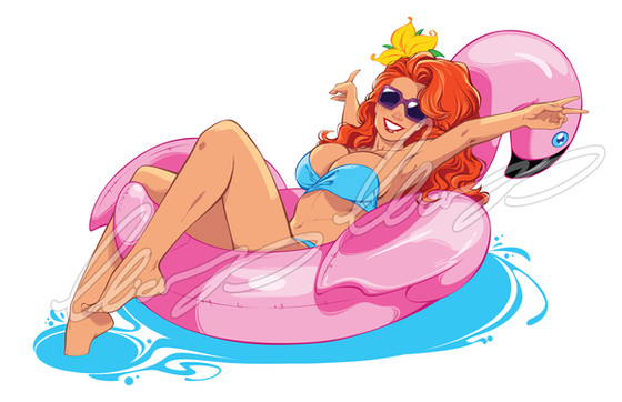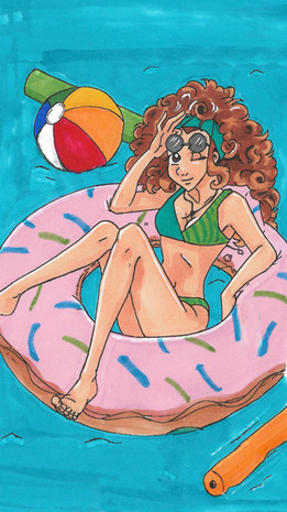 We do a slow zoom out and it shows she's actually in the middle of a swimming pool...