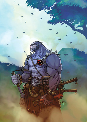 lonely he hate the rules somebody told once that he used to work for an important lord of the coountry but some day he misteriously was founded dead, they say it was Cain, but nobody know since then he become a solitary person, until a mistery ninja founds him, something happened, but now he seems to work for a kind of organization, he is no longer alone.What that man could propose to the juggernaut??