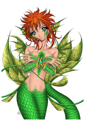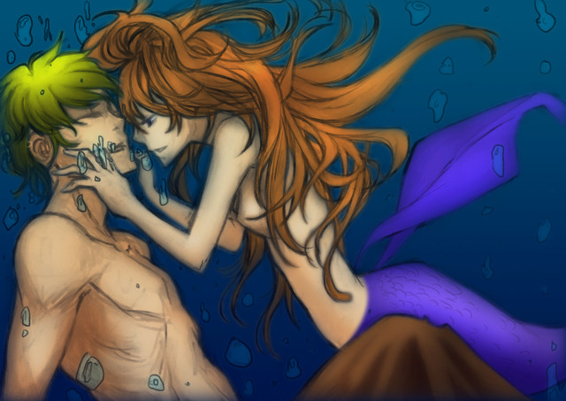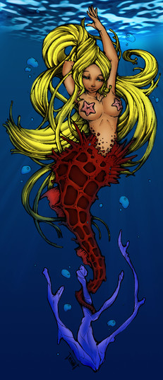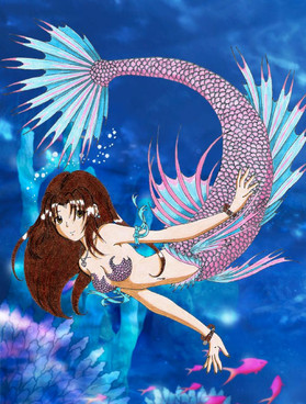 I like the way you drew her hair, making it a bit 'floaty' however, I really think it would look better if you started doing this earlier, more towards the roots too, to really make it look as though she is under water.