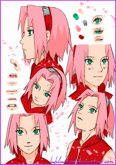 I think the neck is too long and the fore head is a bit small for sakura and also blush lines would look great on her but still you did a great job considering ur not that good with girls (no offence or anythin)