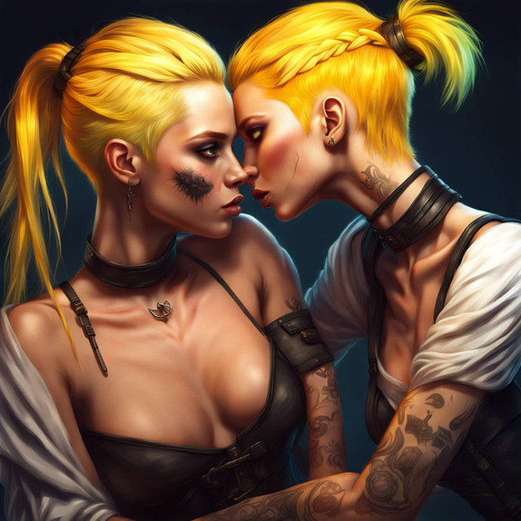 #ai #balance #digitalart #fanart #female #girl #kiss #lady #lesbian #masterpiece #mostpopular #pinup #popular #portrait #sensual #sexy #softness #suggestive #tenderness #toothcheek #inmategirl #inmatewoman #stablediffusion #gencraft