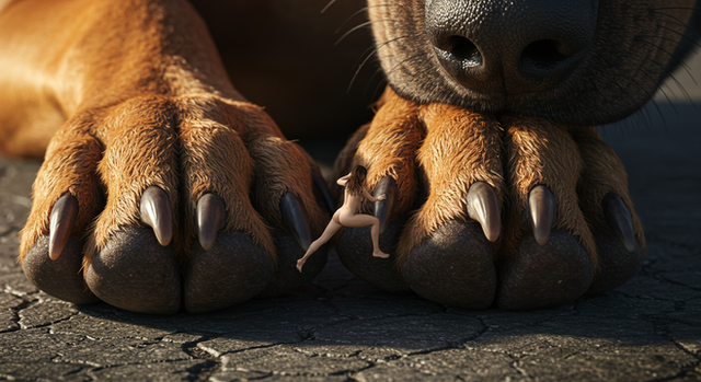 #animal #anthro #canine #crouching #dog #dogs #eye #eyes #fur #furry #gentle #giant #laying #macro #man #micro #nose #pad #pads #paw #pawpads #resting #shrink #shrunk #shrunken #snout #touch #paw_pad #low_angle #snout_on_paws