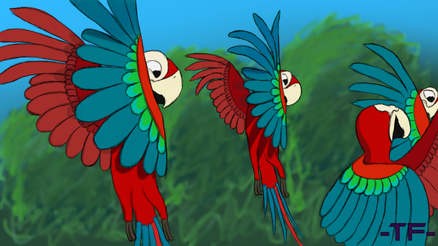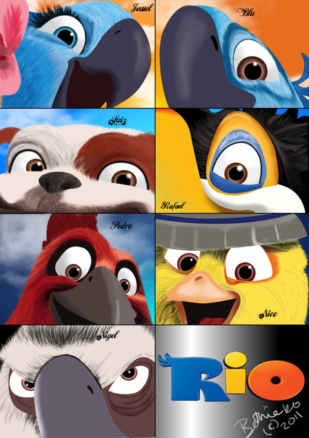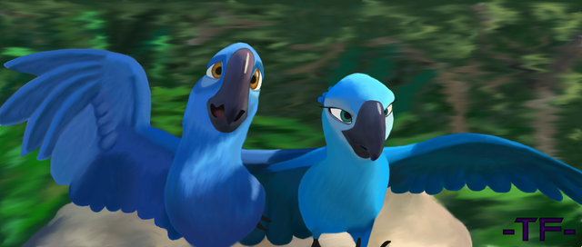 that is so cute! I love your style! Youve got great dimension and blu's eyes are fantastic! Raf is all like IMMA GET CHU MUNKEY! haha good work!