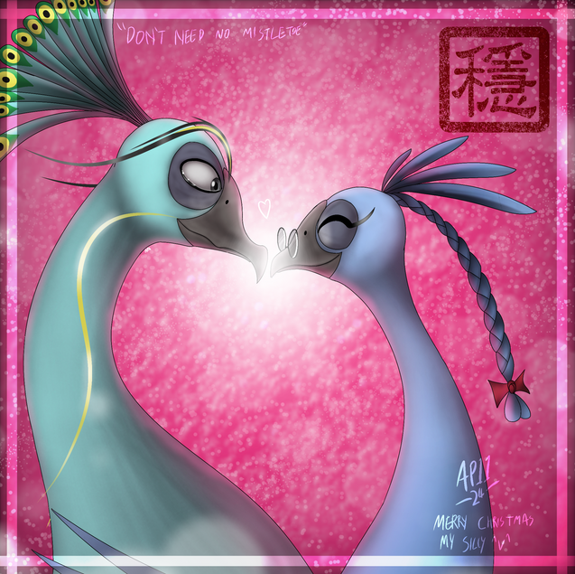 I haven't done a pic without lines for over two months, and I'm very pleased with this. I got really lazy on the background again but hey, those are christmasy colors, and even better, they represent Shen and Fan^^