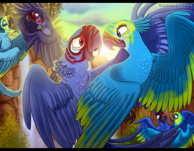 Yay, my first (and possibly last) Rio art without the main characters. This is for NIGHTFURY18's [link] Rio contest.Unlike usual, I decided to leave the lines there, for various reasons... but mostly cause I was lacking the time and patience to make it work without the lines. And I think it looks good like that too.