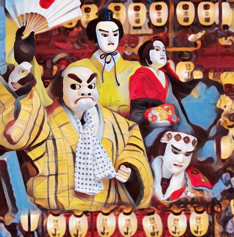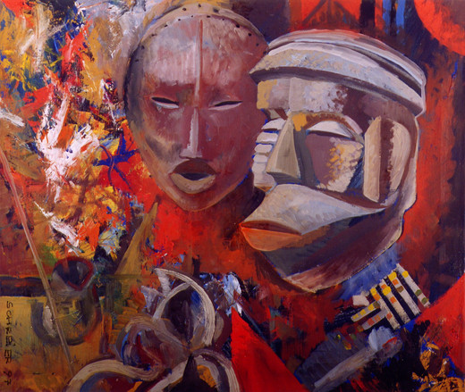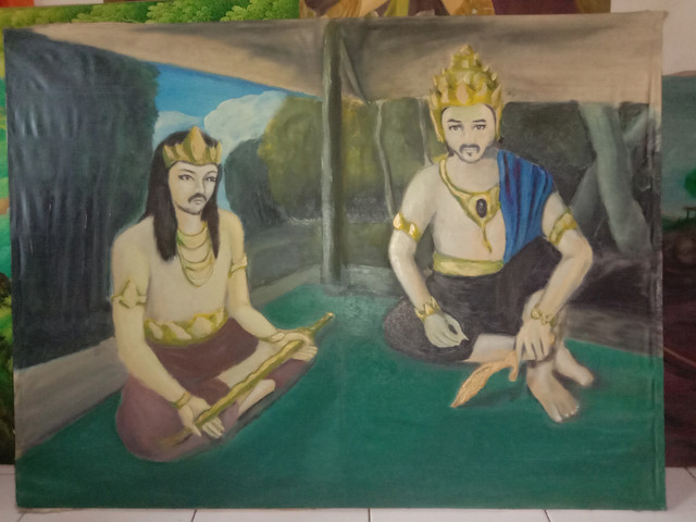 acrylic on canvas (100x80cm)batavia's culture giant puppets are holding out in the modern era