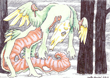 You're not the first one to mention that. I think it may be because everything I draw tend to turn out somewhat cute, even the things that ought to be disturbing like this. Heh. It's not the worst problem to have.