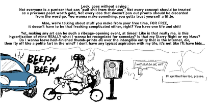 Inspired by the short poem at the end of Fall Out Boy's song - 'Get Busy Living Or Get Busy Dying'.The idea came to me in the early hours of the morning when I was trying to sleep, so I quickly scribbled down the idea in 2-3 thumbnails, woke up today and after doing what I need to do I got round to making it. I would like to do a real life one and take pics when i can be bothered.