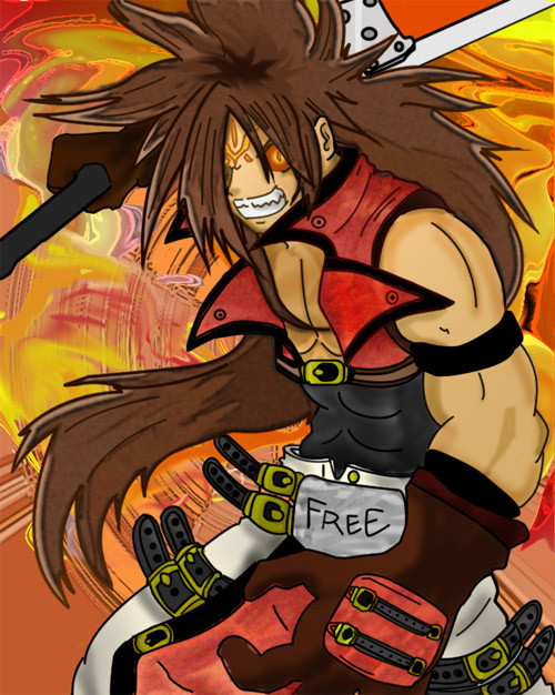 This is Sol-Badguy from Guilty Gear SeriesI drew him with his innate element, fire.