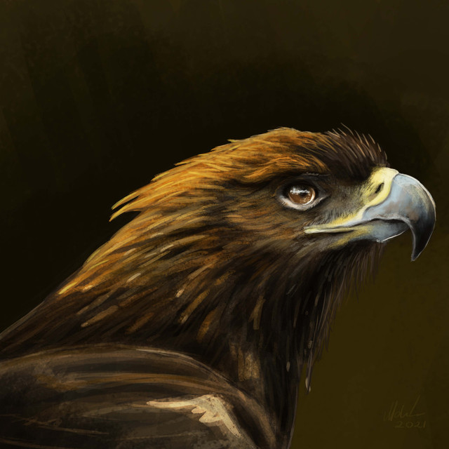 Just a quick study of an eagle. Trying to imply the feathers instead of painting them one by one.I don't remember where did I get the photo. I think I found it here at DA, but I'm not sure. Sorry