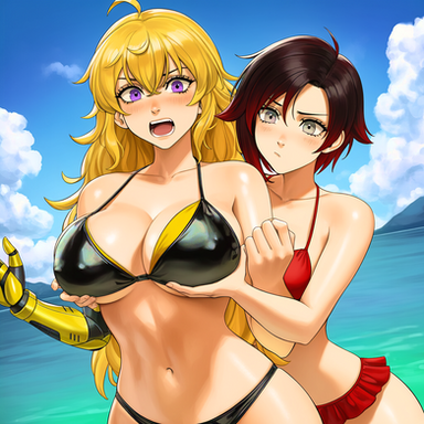 #bikini #breasts #rose #ruby #schnee #swimsuit #weiss #rwby #ruby_rose #breastimplants #twogirls #fakebreasts #rubyrose #weissschnee #weiss_schnee #rubyroserwby #rwbyroosterteeth #weissschneerwby #weiss_schnee_rwby #breast_implants