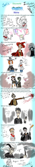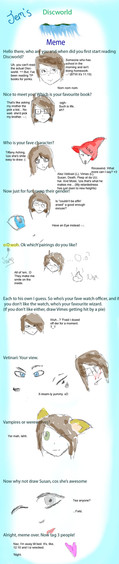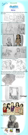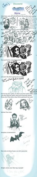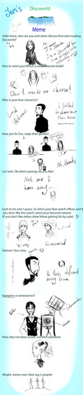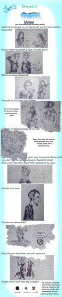 I did Jemini's Discworld meme! It was tons of fun, and if you like Discworld--consider yourself tagged.Haha... my drawings get lazier the further down I go. My hand started to get tired.