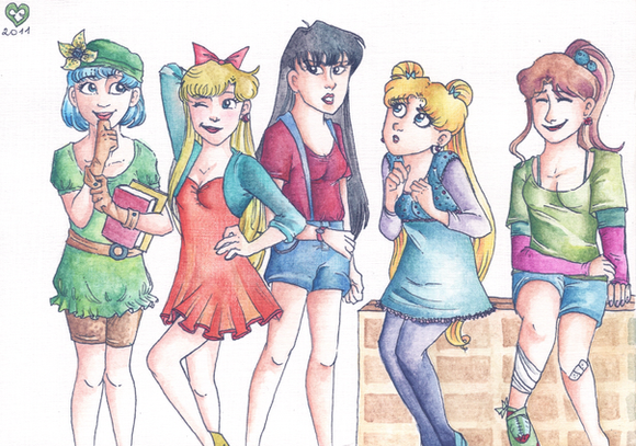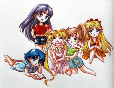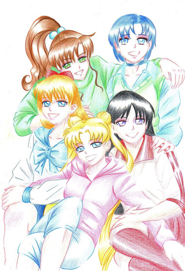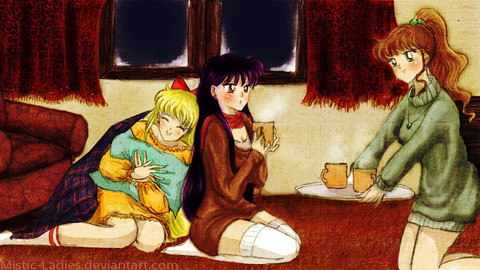 *KoriMichele is having a contest! This is my entry! You should enter the contest, too! You can find the contest here: [link]I kind of wanted to make an image that was really relaxed... after all, our girls need a break from saving the world sometimes, right? I tried to make their PJs vaguely coordinate with their senshi colors... don't know how well that succeeded.
